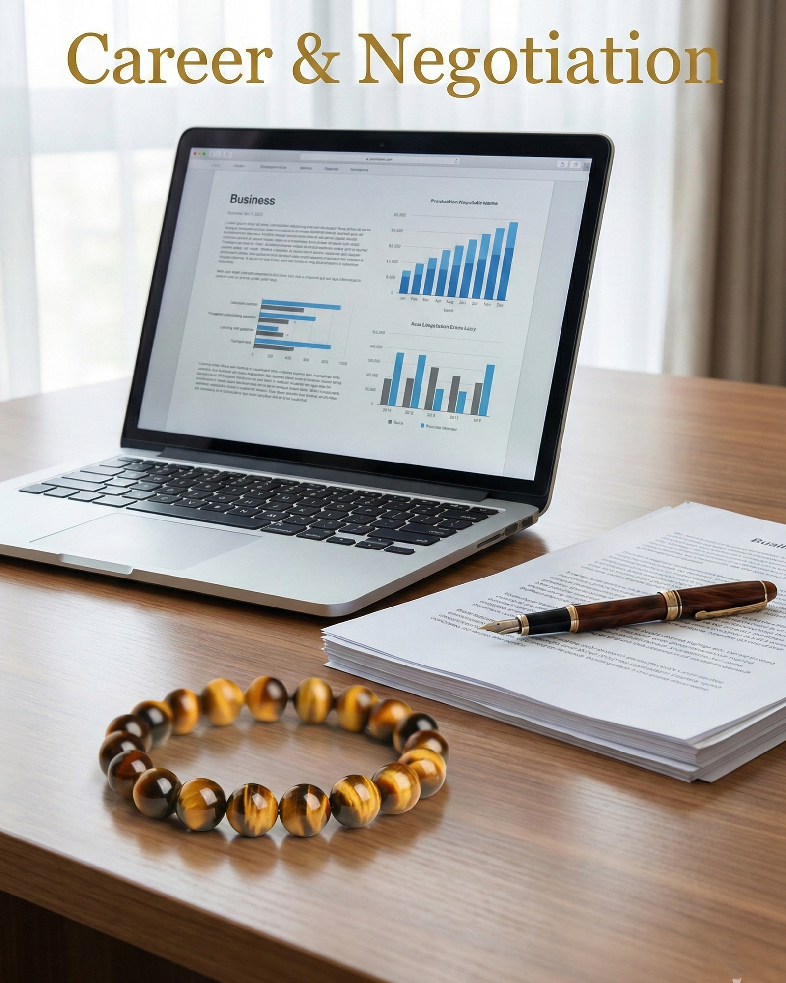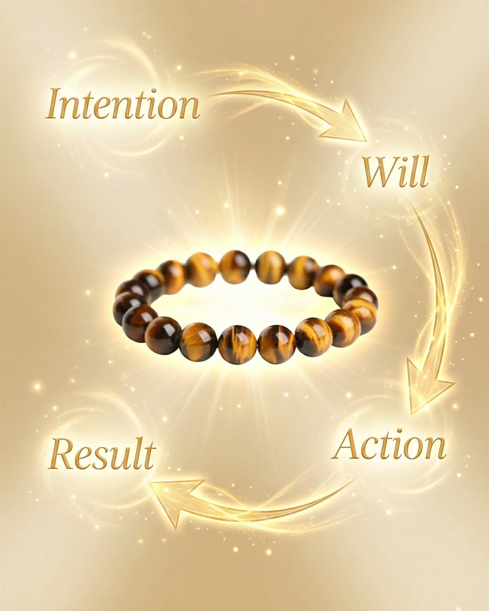 Tiger’s Eye carries a rare Feng Shui tri-element structure: Earth (action), Fire (will) and Metal (decision) — forming a complete chain of real-world execution.